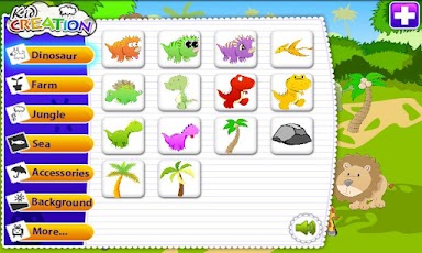Es muy atractiva y consiste en montar escenas con unos fondos predeterminados variados en total disponemos de 12, y para completarlos tenemos la opción de adornarlos con objetos planos (sin movimiento) o con objetos con movimiento que añadiremos tales como animales, motivos decorativos, elementos de la naturaleza, fenómenos del tiempo, etc, y además tenemos la oportunidad de dibujar nuestras escenas con unos cepillos especiales como rainbow, de neón, de alimentos, etc. A ambos objetos, animales, etc se les puede cambiar además el tamaño y la dirección.